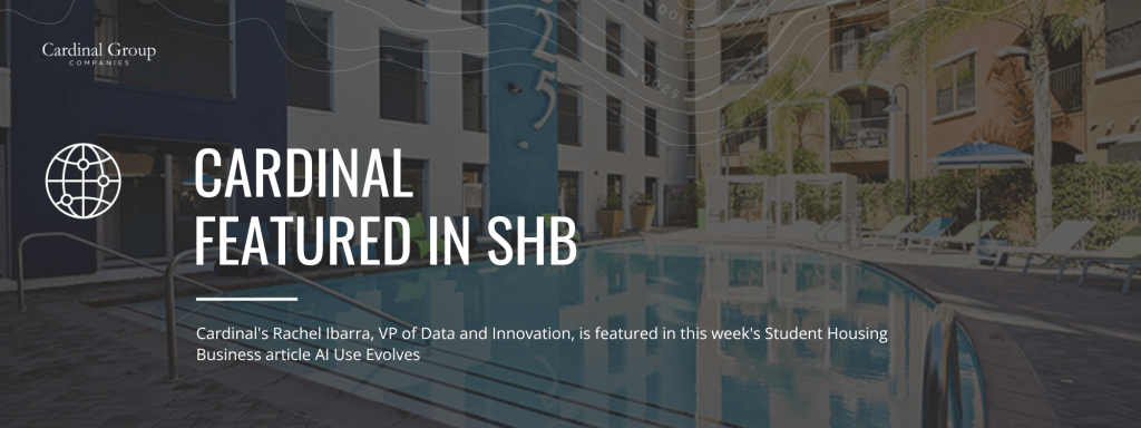 Cardinal’s Rachel Ibarra, VP of Data and Innovation is featured in this week’s Student Housing Business article AI Use Evolves: A look at how AI technology is currently being utilized across the student housing sector and predictions for what might come next.”